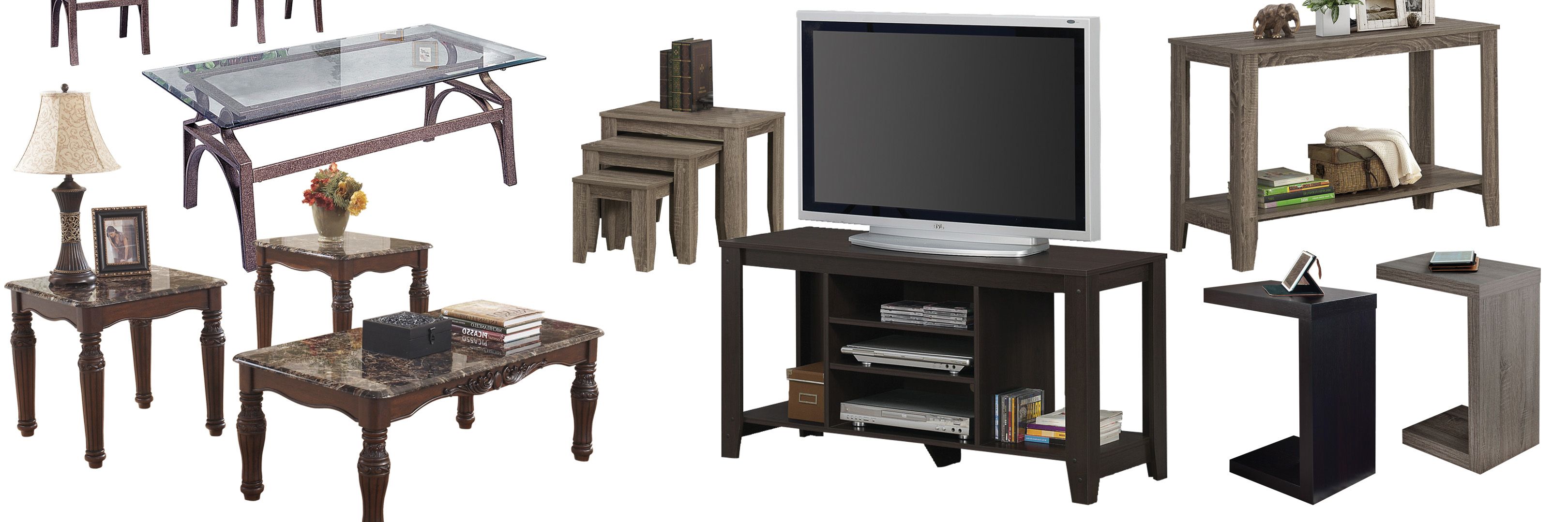 We have a multitude of styles, colours and finishes to match any sofa set or sectional when it comes to choosing your 3 pc. coffee table set. If it's the amazingly popular and inexpensive 3811 Triad 3-Piece cocktail table set by Crown Mark or the faux marble table top and ornate Old World detailing of the 0533 North Shore coffee table collection from the Signature Design by Ashley we'll be sure to satisfy all your wants and needs. You also may be interested in acquiring a hallway or sofa table that may prove to be very practical for everyday use like the Monarch Industries 7915 Dark Taupe which is an exciting new “distressed look” Finish that will match most colours from grey to dark Cappuccino to black! You will also find other matching Dark Taupe accessories with the 3528DT 48" long TV console, 3115 chair side table, 2488DT convenient hollow-core accent table and the multi use 7916 three piece nesting table set.