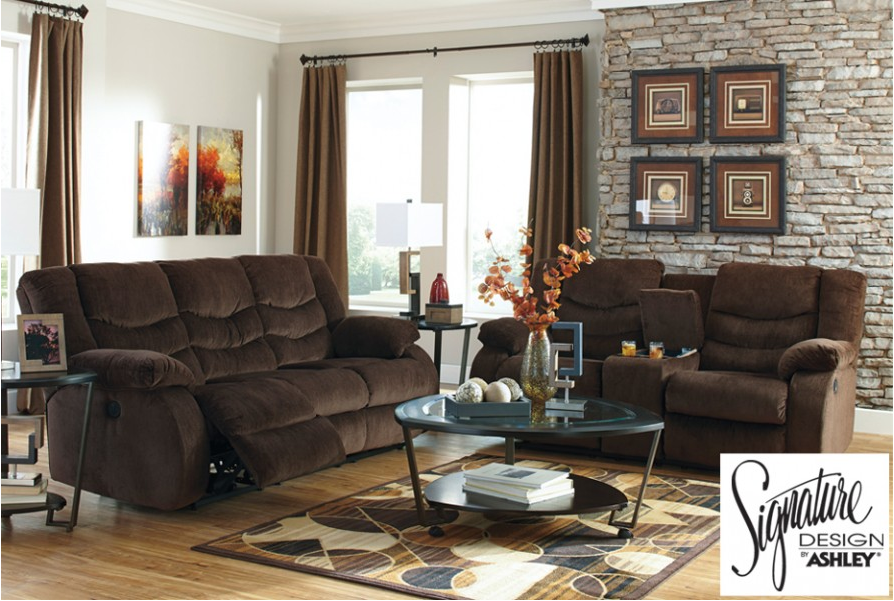 Now that you have made the choice to enhance your in-home viewing experience with one or more home theater recliners, you need to make a few more decisions: Do you want luxurious leather or durable microfiber upholstery? Do you want options like a Buttkicker, power recline or lighted cup holders? Before you give up and go back to sitting on your old second-hand sofa, here are some great collections designed by Ashley to help you choose the perfect home theatre reclining furniture. 1. Linebacker Espresso Bonded Leather Double Motion Sofa/Loveseat The Linebacker DuraBlend reclining sofa is wrapped in a smooth DuraBlend upholstery along the seating area with matched polyurethane cover everywhere else. The smooth surface of the upholstery offers a shiny leathery look that enhances any living room décor with a sophisticated touch. Sink into the plush divided back cushions and pillow top arms for a comfortable relaxation. Features a metal drop-in unitized seat box for strength and durability. [caption id="attachment_1762" align="alignleft" width="300"]9520LE Linebacker Espresso Bonded Leather Double Motion Sofa & Loveseat 9520LE Linebacker Espresso Bonded Leather Double Motion Sofa & Loveseat[/caption] 2. Garek-Cocoa Double Motion Sofa/Loveseat Frame constructions have been rigorously tested to simulate the home and transportation environments for improved durability. Corners are glued, blocked and stapled. Stripes and patterns are match cut. All fabrics are pre-approved for wearability and durability against AHFA standards. Cushion cores are constructed of low melt fiber wrapped over high quality foam. Features metal drop-in unitized seat box for strength and durability. All metal construction to the floor for strength and durability. The reclining mechanism feature infinite positions for comfort. [caption id="attachment_1765" align="alignleft" width="300"]9200GC Garek-Cocoa Double Motion Sofa & Loveseat 9200GC Garek-Cocoa Double Motion Sofa & Loveseat[/caption] 3. Quarterback Canyon Double Motion Sofa & Loveseat With the supportive comfort of the plush divided backs and ample padded arms, the relaxed contemporary style of the Quarterback-Canyon upholstery collection features a soft faux but offers a leather look that enhances the beauty of any living room. Frames have been tested to GSA government standards and corners are glued, blocked, and stapled. All fabrics are pre-approved for wearability and durability against AHFA standards. Cushion cores are constructed of low melt fiber wrapped over high quality foam. Features metal drop-in unitized seat box for strength and durability. All metal construction to the floor for strength and durability. The reclining mechanism features infinite positions for comfort. Heavyweight faux leather upholstery fabric. Collection features the option of power for reclining pieces [caption id="attachment_1767" align="alignleft" width="300"]3270QC Quarterback Canyon Double Motion Sofa & Loveseat 3270QC Quarterback Canyon Double Motion Sofa & Loveseat[/caption]