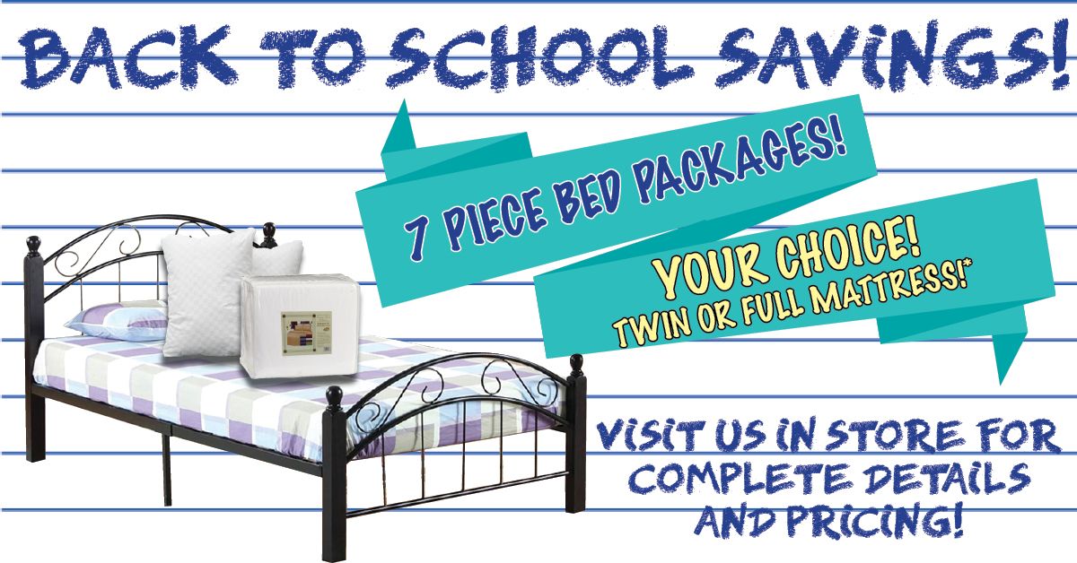 It can be exciting for a new student leaving for college or university for the first time! Living in a dorm or off campus renting a house can also be nerve-wracking! Especially if you need to furnish your new place. Well, we've made it easy for you. At Surplus Furniture and Mattress Warehouse, our packaged savings can get you all the furniture you need for your new digs without denting your wallet (or your parent's wallet)! During the month of August (2015) we have two great deals that will help you get everything you need for less than you think!