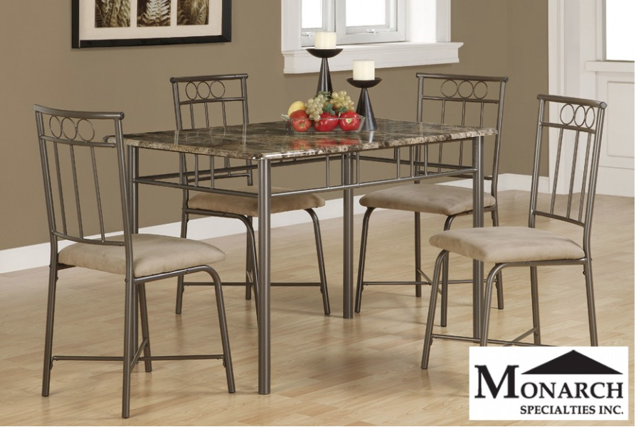 Dining Table Leafs There are different types of dining room tables available that are designed to save space like the removable leaf, extension leaf, drop leaf and butterfly leaf styles. The extension leaf usually has more than one leaf and tends to expand past five feet long. The drop leaf has sides that drop down and the butterfly leaf is hinged and folds underneath the table top for convenient storage. The term dinette usually refers to a dining set that is designed for a kitchen or small dining space and is usually packed all in one box like our model#1029 from Monarch.