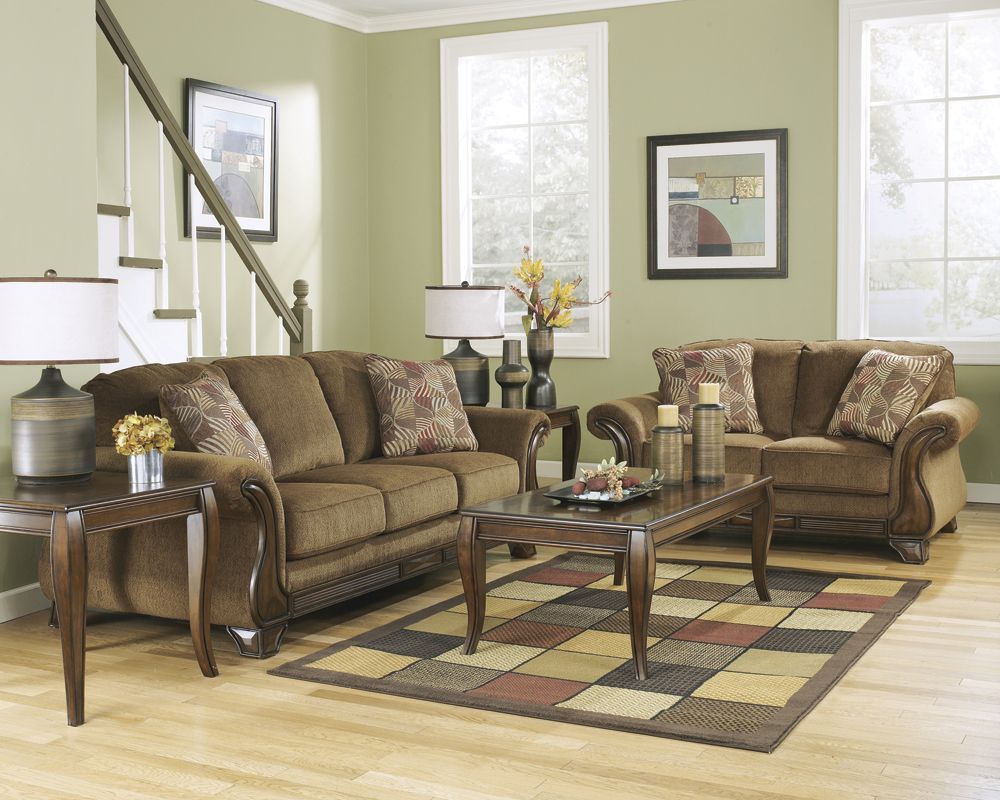 Hey Facebook Fans! We want to introduce and feature another one of our NEWEST livingroom sets that we carry here at Surplus Furniture: our 3830 Montgomery Mocha Sofa & Loveseat from Ashley Furniture Industries. This traditional styled set showcases an earth-toned upholstery fabric that encloses the rolled arms in a rich finished show wood. Both the sofa & loveseat provide a comfortable and supportive design and feature a warm inviting look for your livingroom atmosphere. Built to last, the supportive seating and back cushions are designed to outlast years of everyday use. There is no doubt that its traditional design is a characteristic on its own for your livingroom decor to be built around. We have the dimensions for you to check if this set will fit in your designated space: Sofa: 92”W x 40”D x 39”H. Loveseat: 68”W x 40”D x 39”H. If you like the design and structure of this set, we also carry it in a faux-leather chestnut brown (5280). Make sure you head in